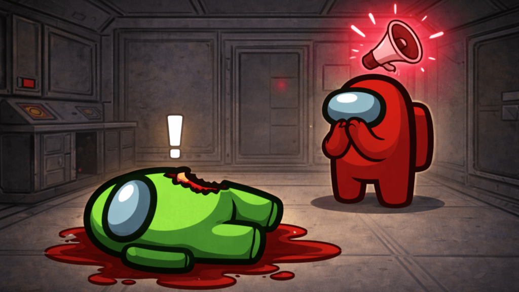 死後に画面上に死んだことを示す表示が現れるため、それを目印に死体を見つけ出すことが出来る。よって、🔴インポスターにとってノイズメーカーをキルすることは、犯行に迫られる可能性が高くなる。