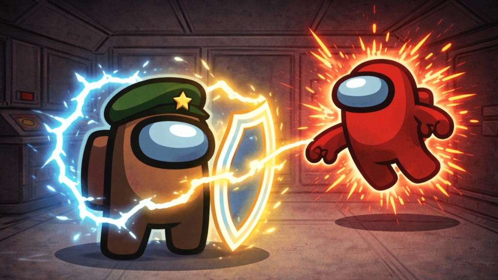 ただし、シールドを持ったプレイヤーは投票で追放することは可能で、シールドを与えた対象が🔴インポスター等の敵陣営である可能性もある。そのため、クルーだと信用している味方にシールドをあげたい。メディックが死ぬと、シールドも消える。