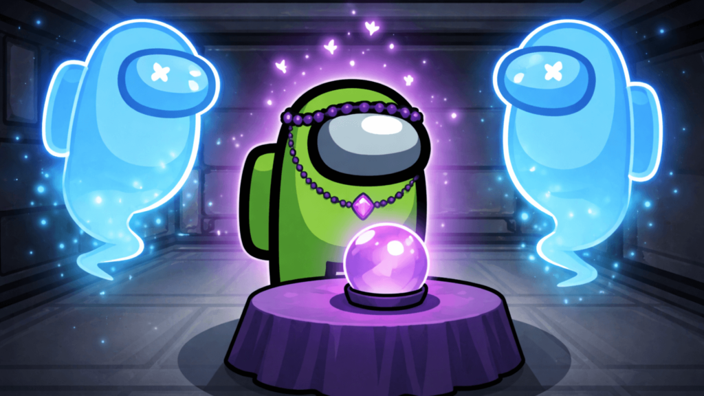 霊媒師は、死んだプレイヤーの魂に情報を求めることができるクルーメイト。🔴シーアーと同様に、1ラウンド前に死んだプレイヤーが死亡した場所を霊によって確認することができ、それに加えてその魂に質問ができる。
