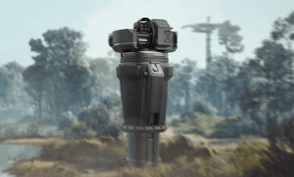 タレットは天井や壁に設置された固定砲台型ARCで、主に屋内エリアでレアリティの高い物資を守るように配置されている。