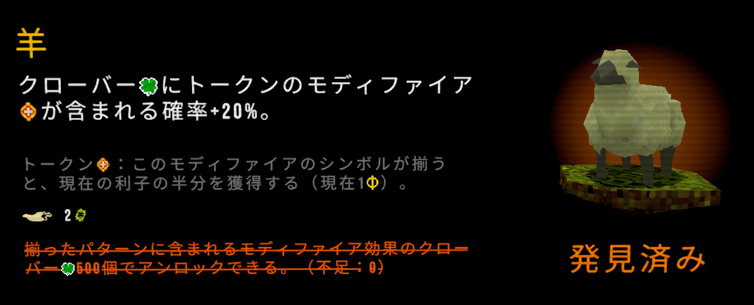 【CloverPit攻略】ラッキーチャーム一覧まとめ【クローバーピット】 AD ゲーム&アプリ 2025.10.152025.10.21 楽しいギャンブルゲーム『CloverPit(クローバーピット)』のラッキーチャームをまとめました。 CloverPit攻略ラッキーチャームエンディングメモリーカードストーリー考察 目次 ラッキーチャームまとめ白電話によって解放されるもの ラッキーチャームまとめ AD AD AD 白電話によって解放されるもの 黒塗りで隠されていますが、666を999にすることによって発生する白電話にて、解放することができます。詳細:エンディング。 AD CloverPit攻略ラッキーチャームエンディングメモリーカードストーリー考察