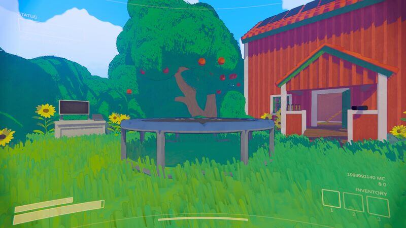 暇つぶしに遊ぶことができるトランポリンが家の前に建てられます。トランポリンに乗ると跳ね始め、タイミングよくジャンプをすると、より高く速くジャンプすることが出来ます。