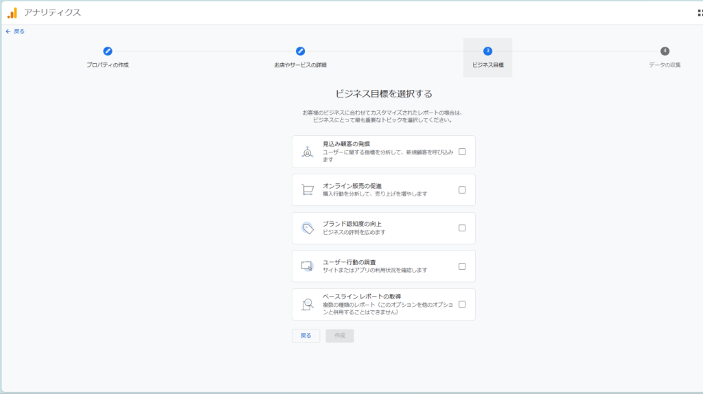 目標を選択します。自身の目的に合ったものを選びましょう。