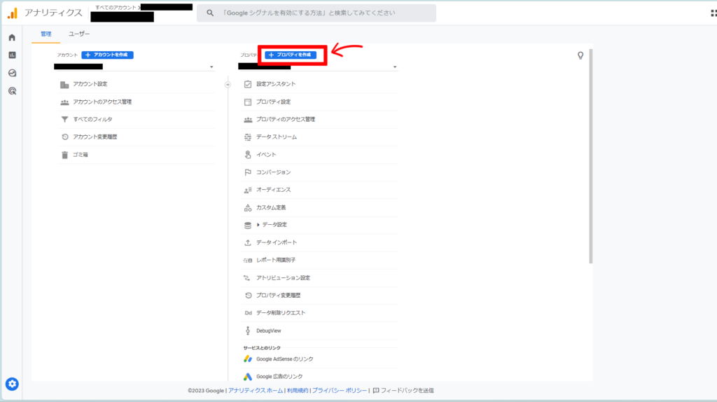 赤枠のプロパティを作成をクリックします。