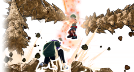 前方にダッシュして攻撃し、相手を吹き飛ばす。地上ではキャラの向きに移動し、空中では標準方向へ移動する。命中すると対象を石に封じ込め、その後爆発させる。