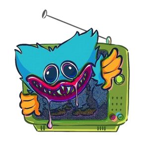 テレビから這い出るハギーワギーの壁画。