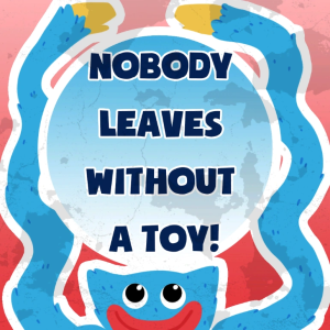 訳「おもちゃなしで帰る人はいません!」
