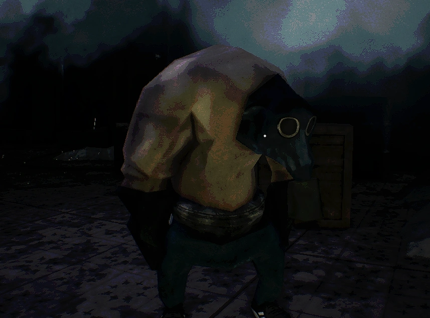 ガスマスクを付けた背が低めの人型エンティティです。