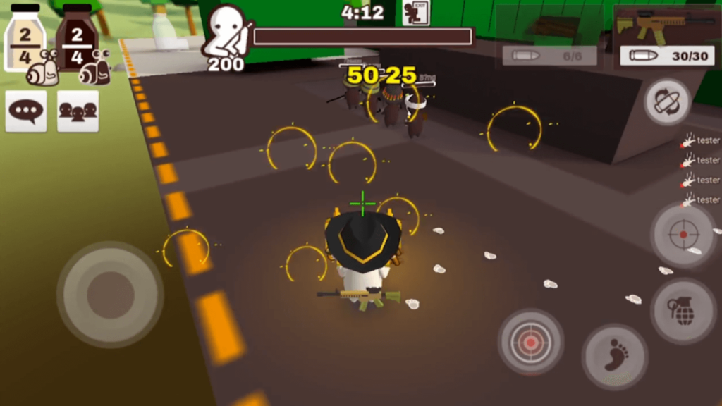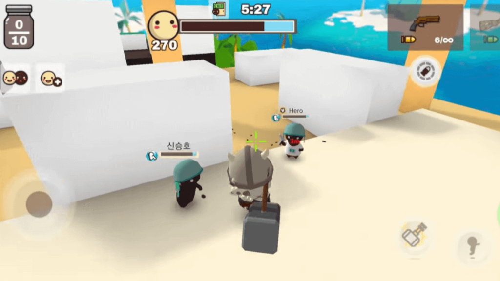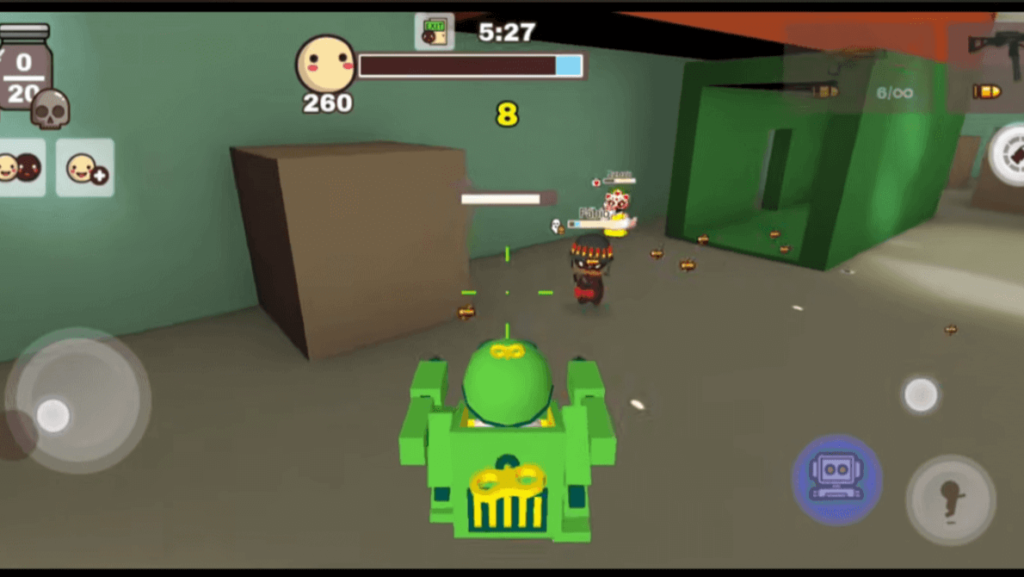 近くの敵に必中のダメージを与えることができる、初心者の味方のキャラクターです。攻撃は通常の武器よりも遅いため、1v1での単純な撃ち合いでは完全に不利なものの、ロボットの耐久と必中という強みを活かして戦えます。