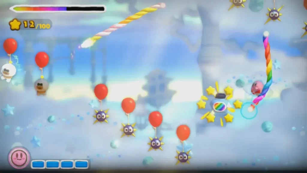 操作のクセから分かるように、カービィゲームの中で操作が一番難しい作品です。慣れるまでにも一番時間がかかるかと思われます。ステージ毎にタイムリミットと苦しめるためのギミックが施されており、非常にクリアが困難です。敵を倒すためにもカービィのハネアゲで倒すしかないため、技術が求められます。収集品についても大変で、ミニゲーム開放に必要なブルースターは、ゲームオーバーにならずにゴール必要があり、攻略率で大事になってくるレッドスターは32個所得する必要があります。それなのに、一度クリアしたレベルはレベル8をクリアするまで再プレイできないです。
