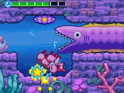 シリーズ3作目となるこの作品。3匹の仲間リック、カイン、クーが初登場したゲームであり、コピー能力自体は多くありませんが、合体しているキャラクターによって多様に変化します。