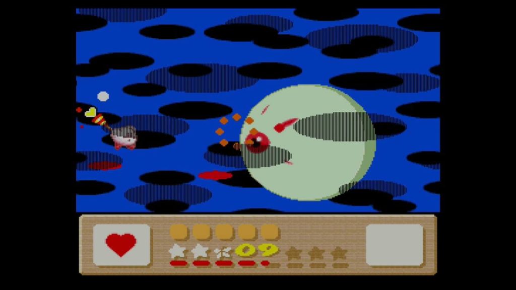 カブーラーは「やきいもシューティング(曲名含め)」と呼ばれるシューティングゲーム形式で戦うことになりますが、上下の移動に加えて大砲発射や突撃攻撃が高速化しており、捉えるのが非常に難しいです。また、エクストラでは、追加行動パターンとしてホーミング弾も放ってくるため、通常モードのようにはいきません。