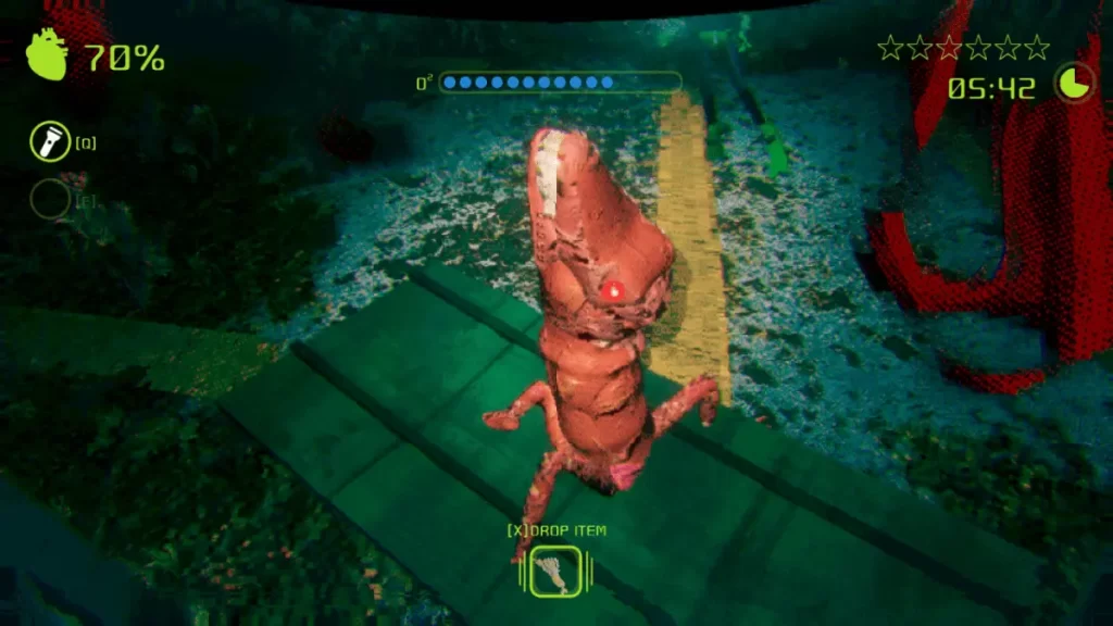 プレイヤーに対して敵対的な生物です。吸血による攻撃で継続的なダメージを与えてきます(30%与えると一度離れる)。噛まれたら仲間のところに行ってパンチしてもらいましょう。これにより、モンスターが一時的に気絶します。噛まれる前であれば自分自身のパンチでもスタンさせることが可能です。レーザーカッターなどのアイテムで殴ることでキルが可能です(そのまま消滅します)。