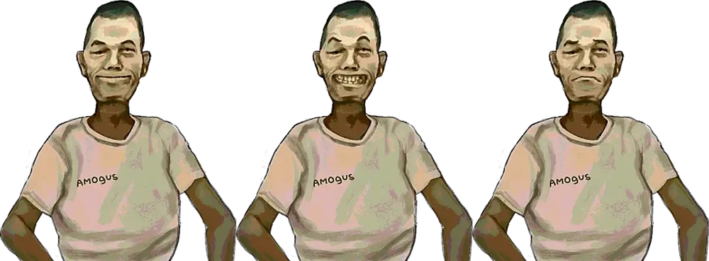 アモガスガイは2日目の夜以降ランダムに訪れるキャラクターです。「アモガス」と書かれた白いシャツが特徴的で、短い髪で常に片目を閉じています。アモガスガイは来訪者か人間かはランダムです。