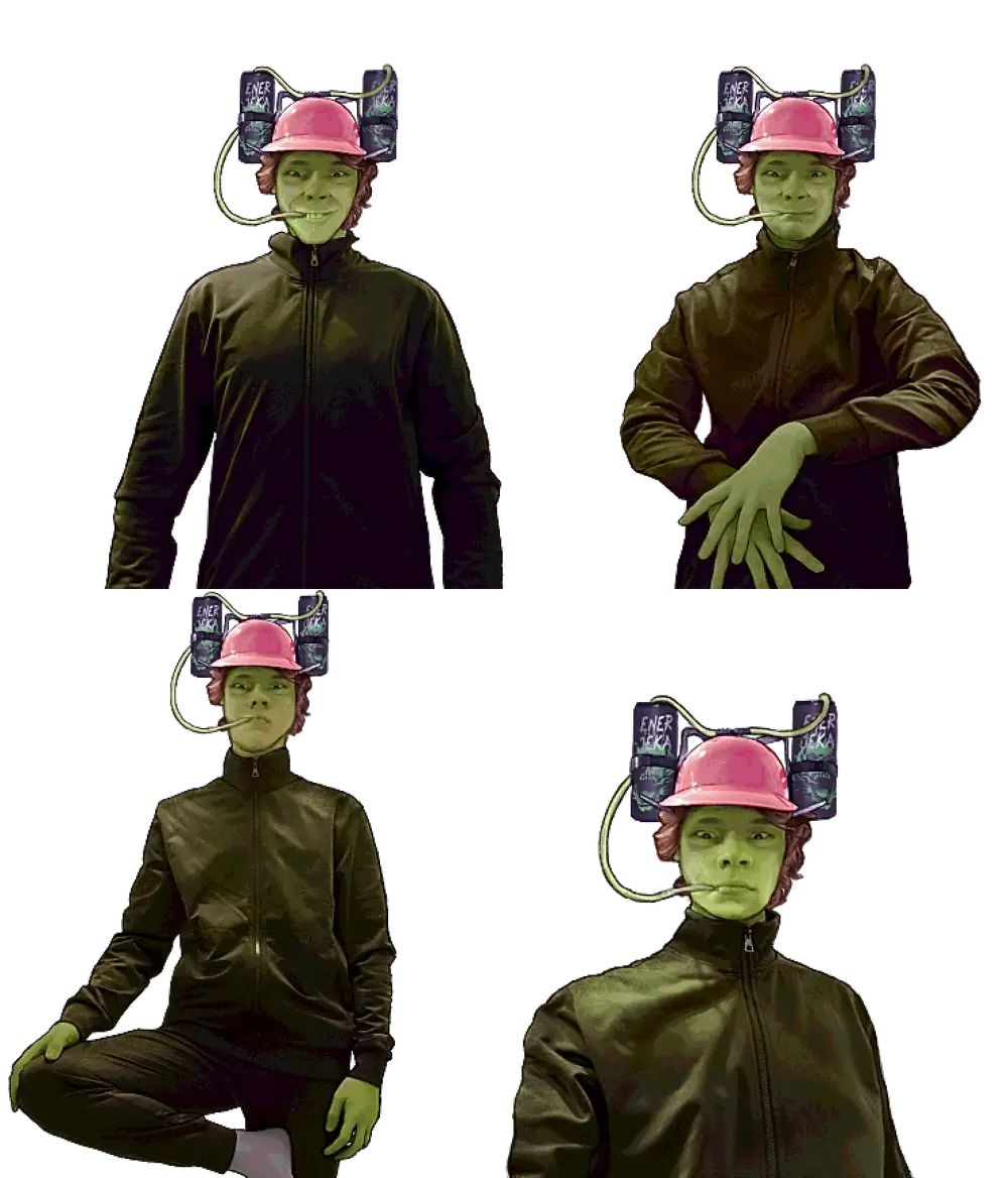 エナジェカ中毒は見た目通りのエナジェカ愛飲者であり、その執着は中毒を感じさせるほどです。ただ、話してみるとエナジェカへの愛以外は結構まともで、話が脱線したりすることはあるもののゲーム内でもかなりの常識人&気の良い人です。見た目は緑がかっており、エナジェカの長期間飲み過ぎによって舌や目なども染色されています。