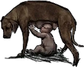犬を貪っているのか?…いや。彼らは動物の胸にぴったりと寄り添っている。
