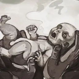 恋する女のお腹が破裂しており、赤子が出現する。- 居間・浴室で赤子を見つける。