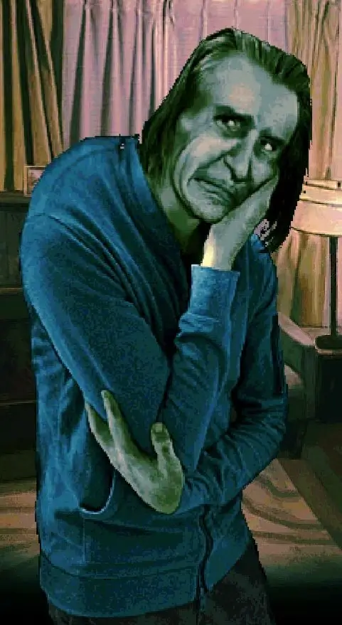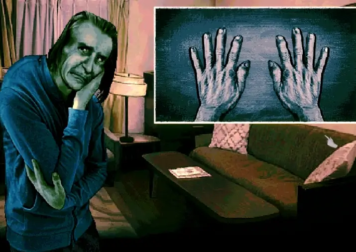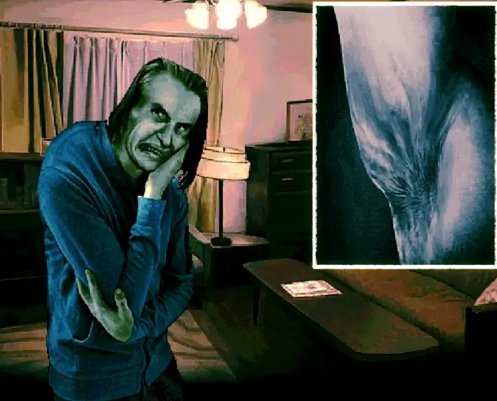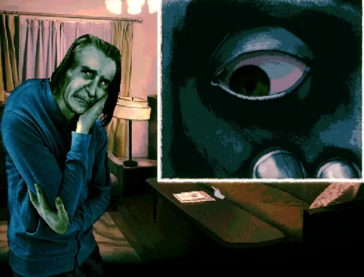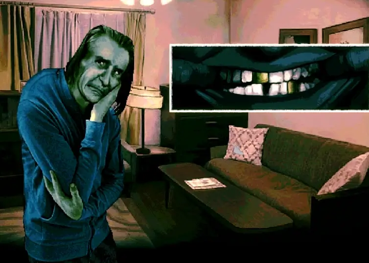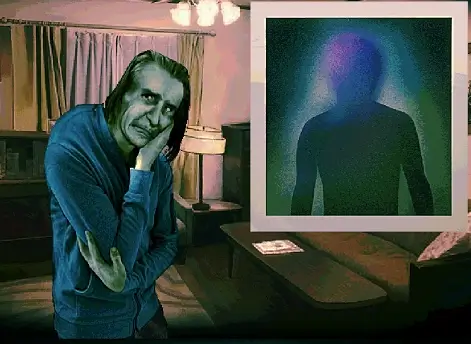 写真で訪問者であることが証明された場合、彼は証拠を否定し、主人公と彼自身に、後ろの人物はレンズの上の煙かほこりにすぎないと納得させようとします。