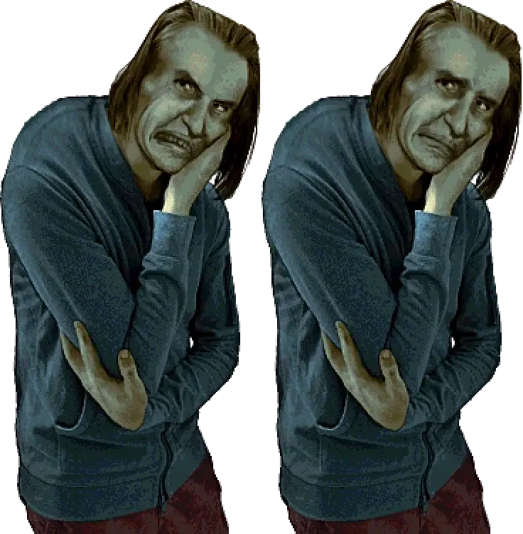彼は、来訪者か人間かランダムであるものの、見分けるのが非常に難しいキャラクターとなっています。詳細は後述の「識別」にまとめますが、簡単にまとめると、「金歯を盗んで自分の歯ではない部分がある」「墓を掘るため爪に土が付いてる」「夜間に仕事をするため、来訪者でも充血しない」などがあります。