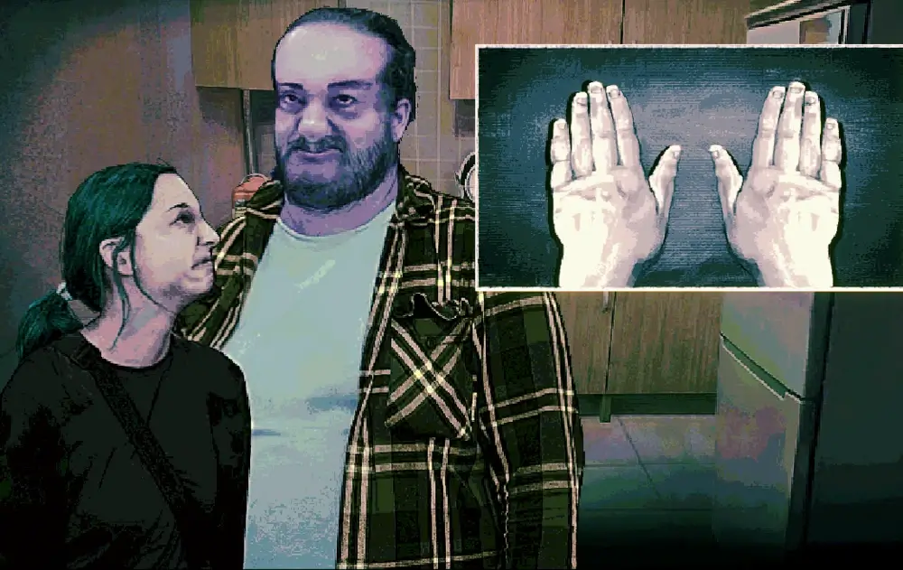 来訪者の兆候ですが、人間の場合は手が荒れています。拳の部分に痕があり、妻を殴ったことによる(DV)ものが見られます。来訪者の場合はありません(セットのため、来訪者の場合は妻も来訪者)。