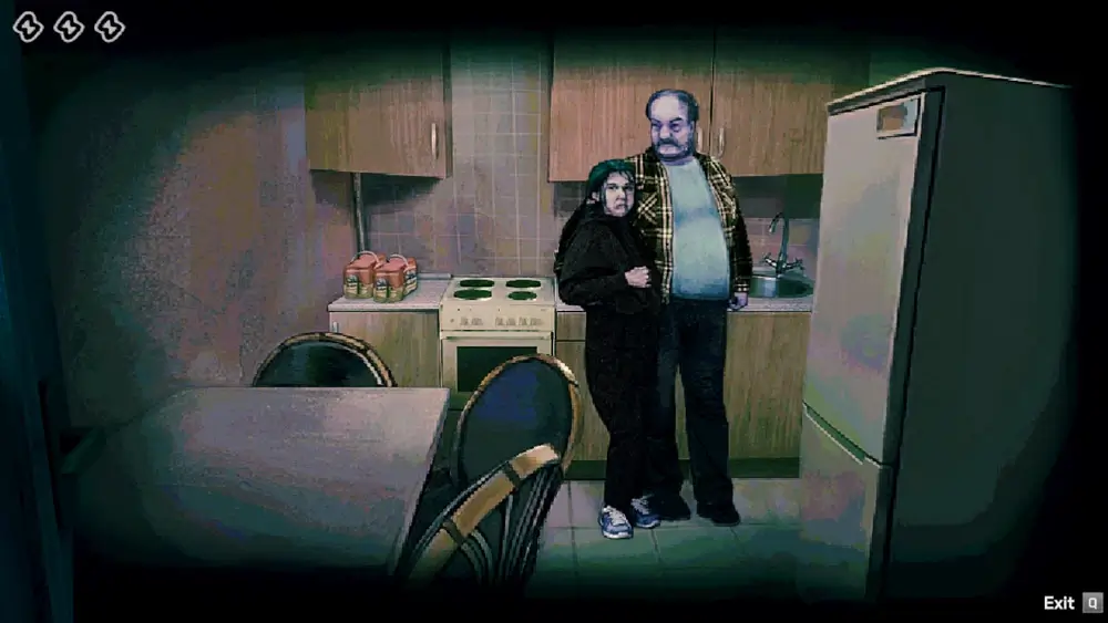 夫婦は一緒に玄関に現れ、2人いますが1キャラクターとして扱われます。家に入ることを断った場合、夫婦は消耗アイテムを賄賂として渡して中に入ることをお願いしてきます(入れる場合は受け取るとお得)。夜、プレイヤーがキッチンのドアに近づくと、夫婦が話しているのが聞こえます。