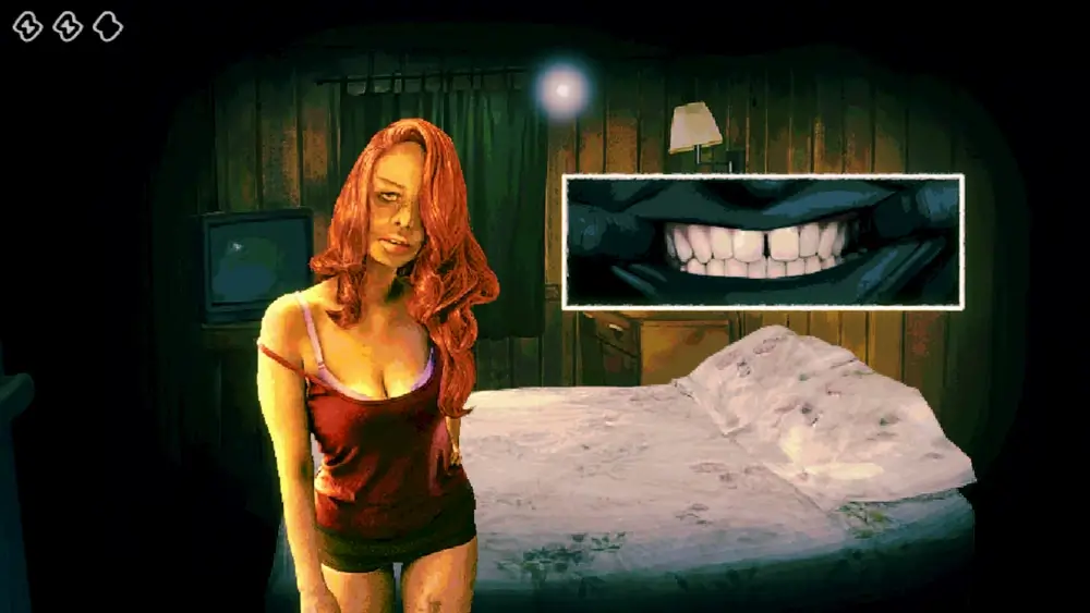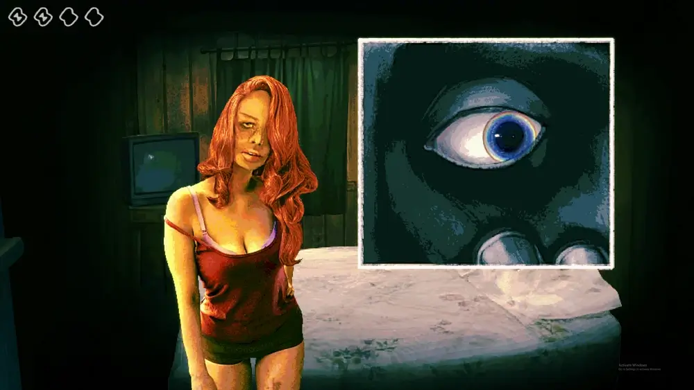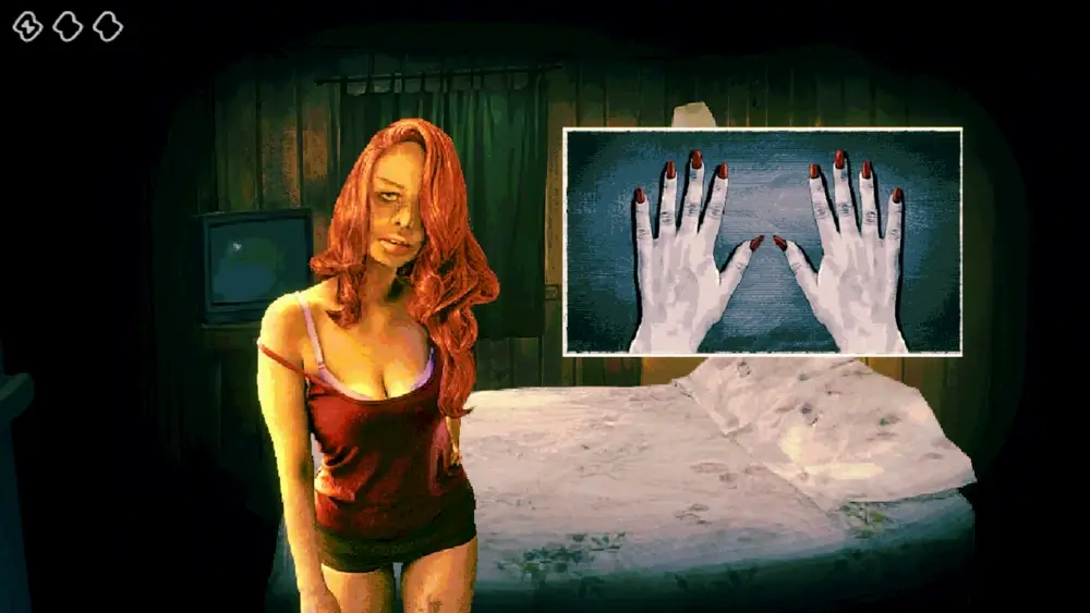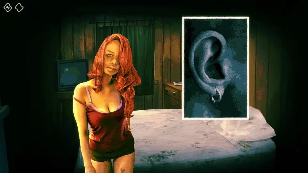 恋する女は主人公に強い恋愛心を示し、度々誘惑しようとします。ベッドを共有し、二人の間の性的なつながりをほのめかしています。