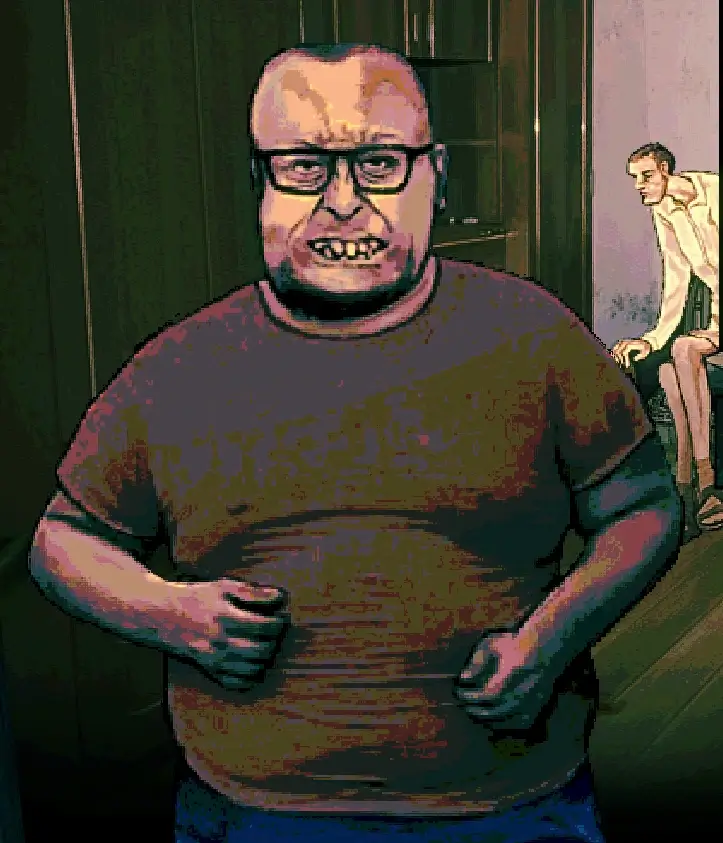 『No, I’m not a Human』の怒る男は主人公の家を訪問してくる男性キャラクターです。