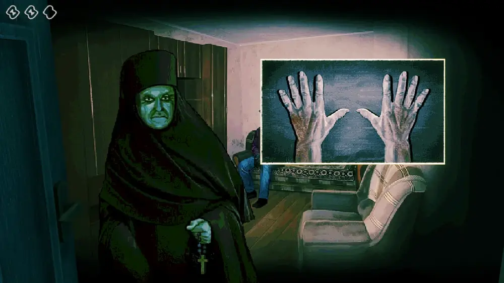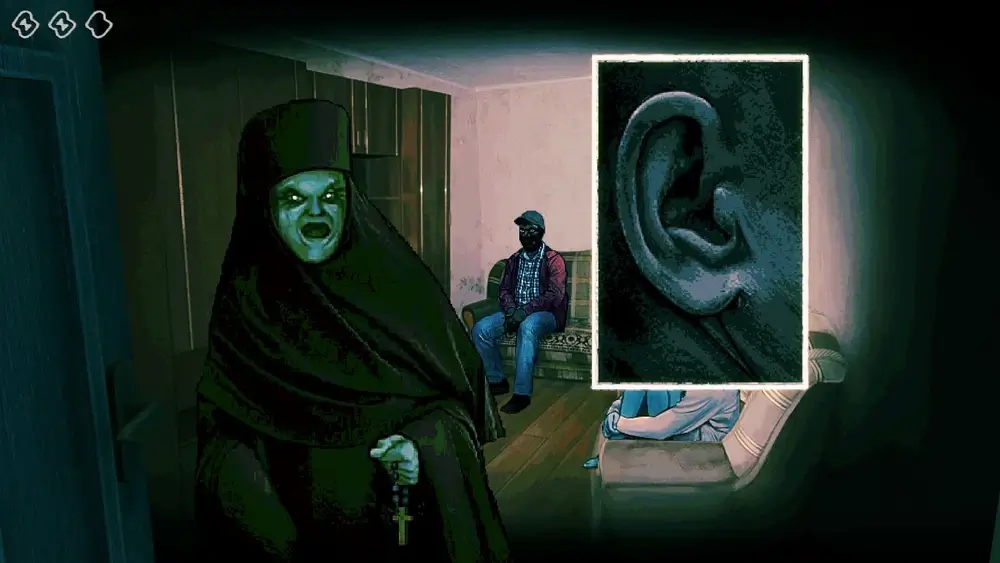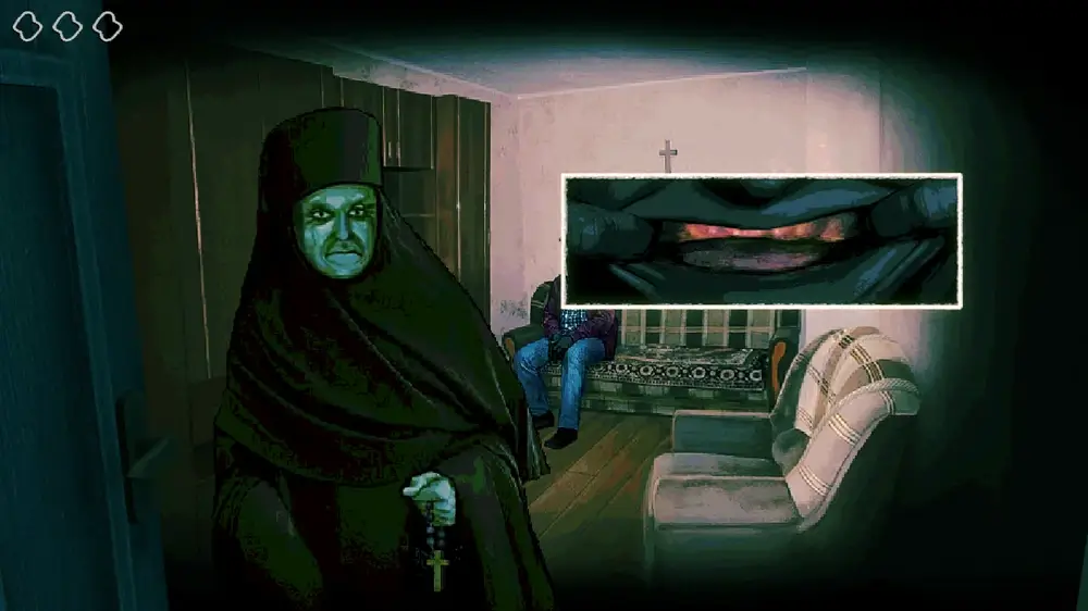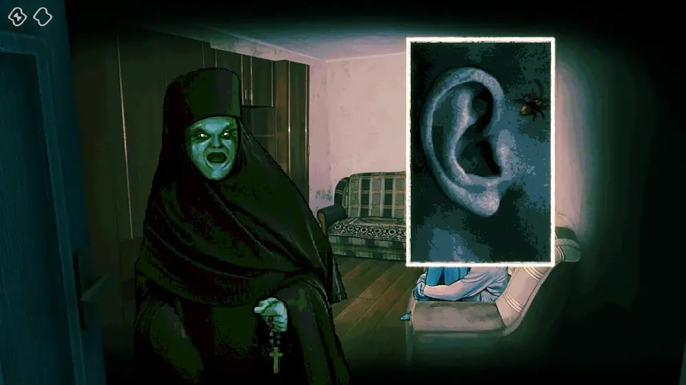 家に入ることを許可すると、居間の左側に立っています。翌日の夜、プレイヤーがリビングルームのドアに近づくと、シスターの詠唱が聞こえます。