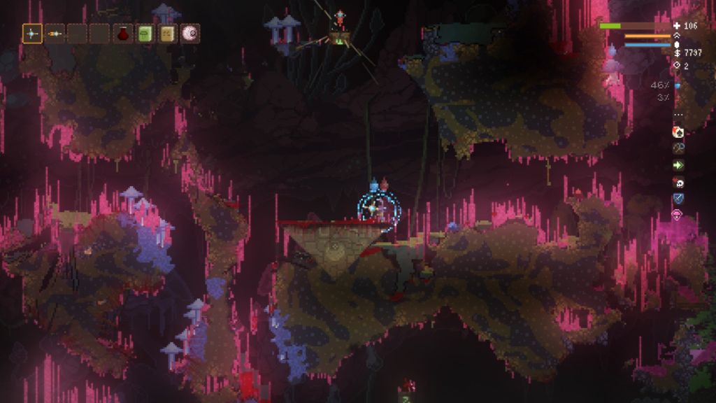 「Noita」というのは2dでピクセルが物理的にシミュレートされたのローグライトゲームです。ピクセルの世界ですけど水の流れや放物線の物理演算が正確で、難しいけど面白いです!この時代にピクセルゲームをするのも新鮮で楽しいです。