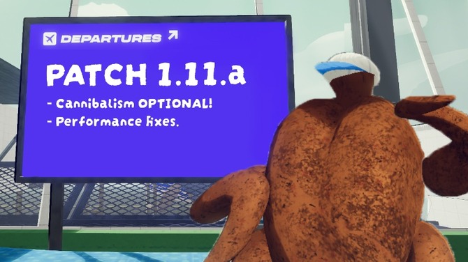 空腹値が70%以上あると、他プレイヤーの姿がチキンに見えるようになり、近づくと食べるアクションができるようになります。