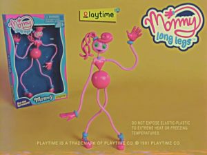 マミーロングレッグスは長い手足を持つ蜘蛛のような女性のキャラクターです。実は、おもちゃとして発売されるよりも前に弾性プラスチックをテストするために「ビガー ボディーズ イニシアティブ」で実験されたのが始まりです。その後、子どもたちに評判が良かった様子を見て、おもちゃとして逆輸入して1991年2月に発売されました。