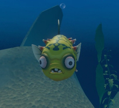 海中にいる、プレイヤーを見つけると追いかけて自爆してくる毒フグです。爆発はダメージが有り、毒を撒き散らします。