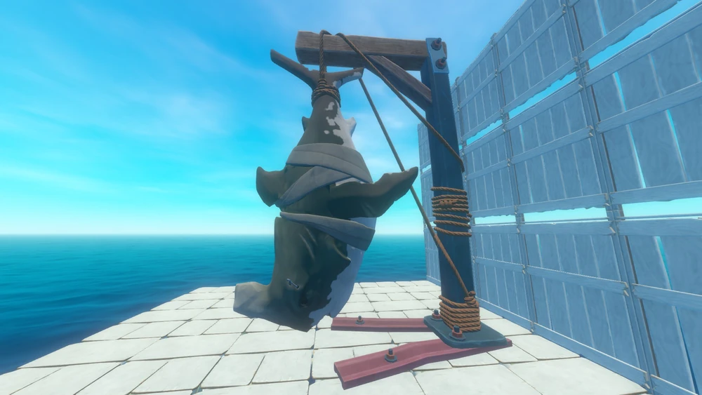 いかだの周りに常に存在する敵であり、プレイヤーが水に飛び込むと周囲30メートルを補足して攻撃を仕掛けてきます。また、5分ごとにいかだを攻撃して1マス分のいかだを破壊してきます。この時は15ダメージ分の攻撃を与えれば阻止できます。これは、プレイヤーがいかだから離れている際は行ってきません。土台はアーマーをつけることでサメによる破壊を防ぐことが出来ます。