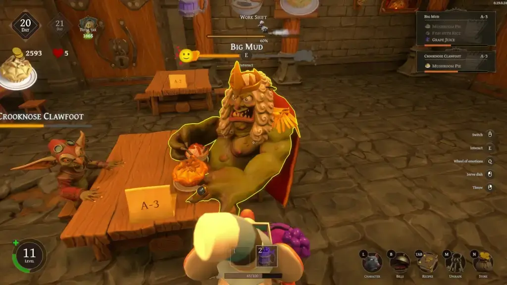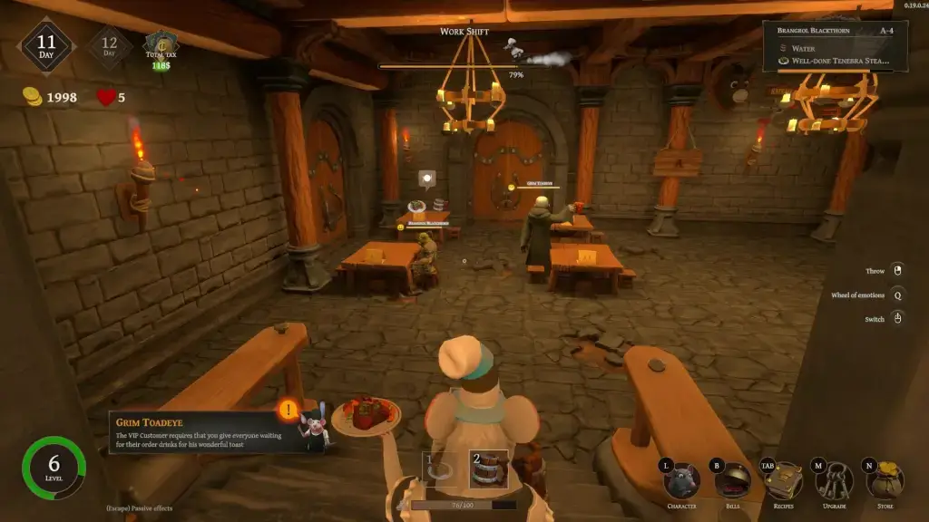 ゴブリンのVIP客は非常に忍耐力が低く、すぐに減り続けていくため、注文を迅速に届ける必要があります。ゴブリンのVIP客に近づいてリズムミニゲームを踊らせて楽しませてもらうことができ、これは彼らの忍耐バーを最大まで回復することができますが、やはり注文は急がなければなりません。