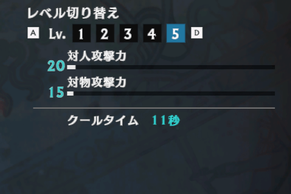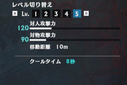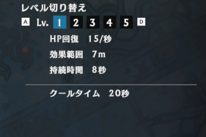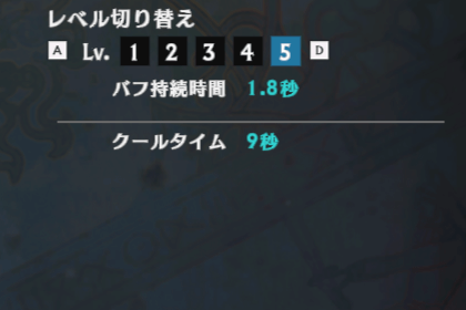 上昇幅は大きいが持続時間は非常に短い。タワー占拠巡りなどには有用ではあるが、持続時間の短さからバフを利用した戦闘や逃走は一時的に過ぎない。
