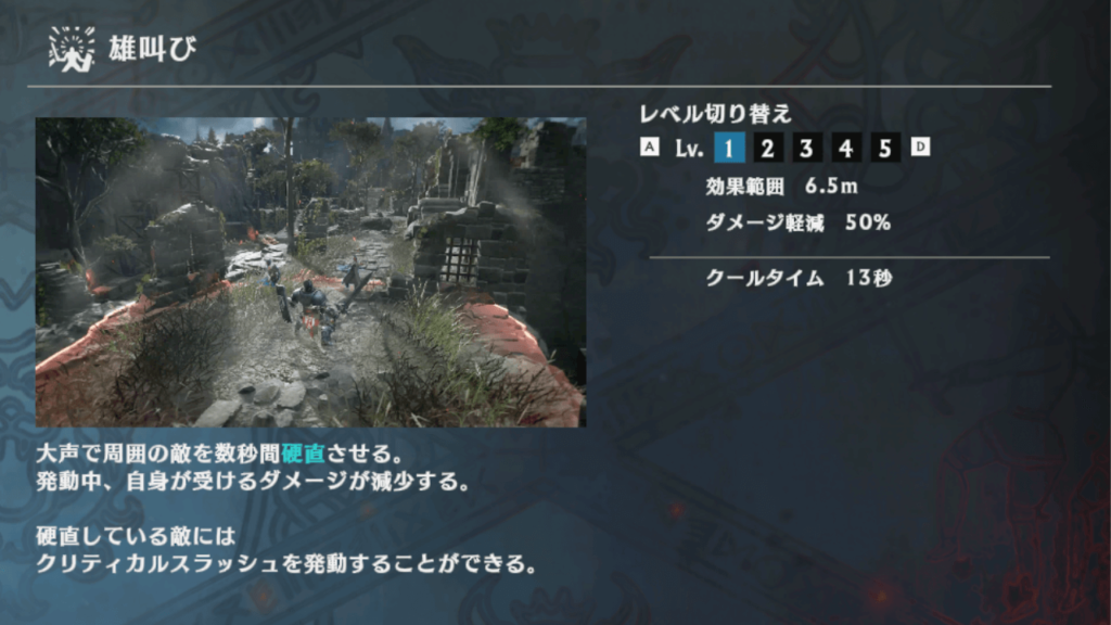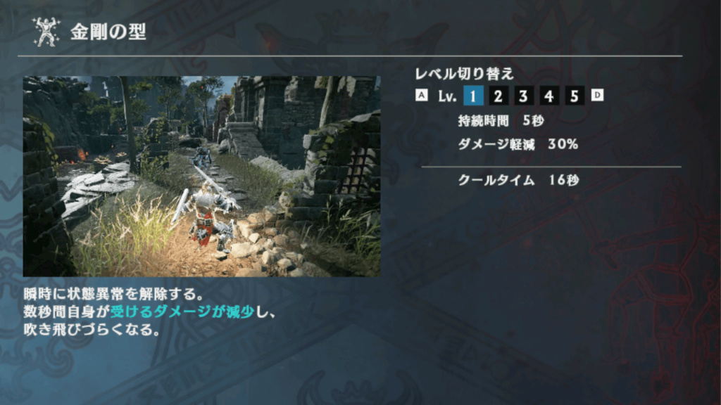 低レベルの間はあまり強くはないが、レベルが上がるにつれて被ダメージカット率とクールタイムが減少するため、より硬く高頻度に使える。戦士をメイン運用する場合はかなり強力なスキルとなる。