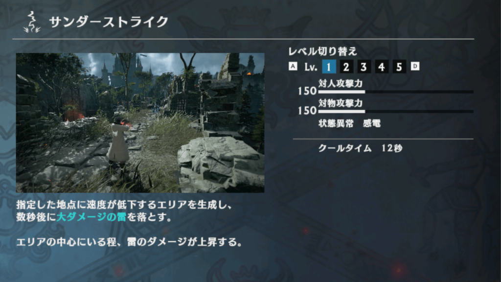 非常に使いやすく、高台や低所から遠距離まで対応でき、感電によってエリア内にスロウ効果もある。ダメージ発生までに時間がかかるものの、置いておくだけで強力なスキル。