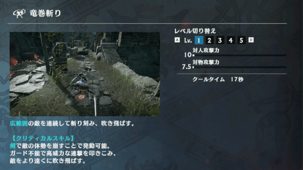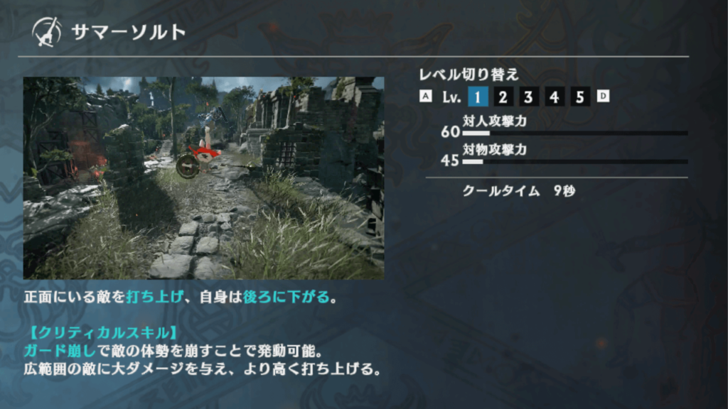 正直、これが当たるのであれば普通に斬って倒してしまえる。ただ、クリティカル後のコンボではダメージがかなり伸びるため、ロマンはある。