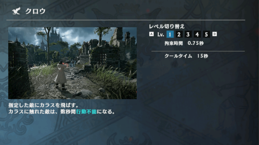 低レベルのクロウだとそもそも拘束時間が短すぎてダメージを稼げず、わざわざ使いたくはない。