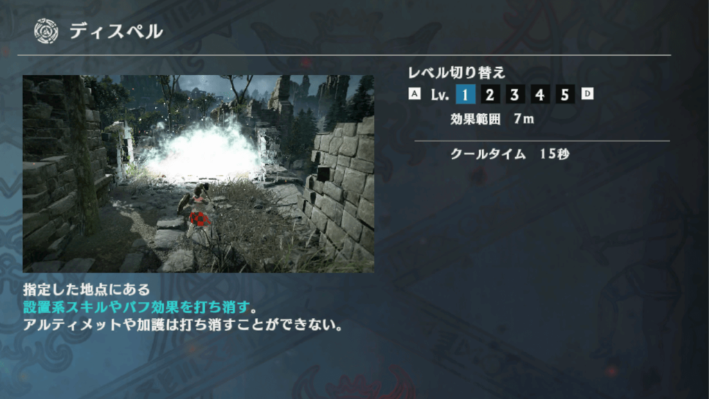 最初こそ体力や攻撃バフを消せて強いが、それ以降は罠に対して使うくらいで影響力が非常に小さいスキル。クールタイムが長くレベルアップでも性能の上昇幅がないため、あまりオススメはできない。
