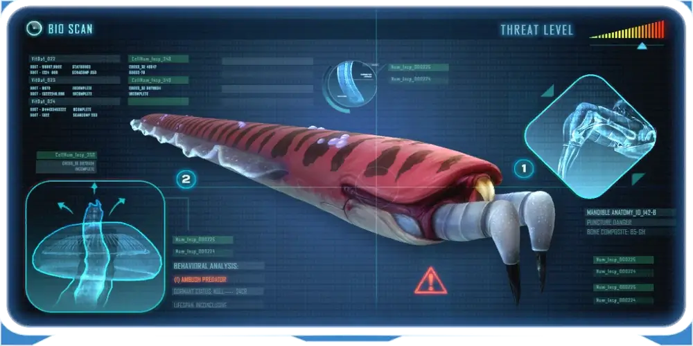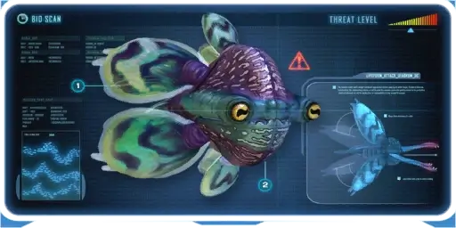 サイクロプスより少し短いくらいの大きさで、泳ぎが速く攻撃も非常に強力です。多くの人にトラウマを与え、その攻撃は生身で受けた場合80%も削られます。また、シーモスやプロントスーツにもしがみついてダメージを与えてきます。これは、シーモス周囲防御システムで離すことが出来ます。プレイヤーの体力が減っている時は即死させてきます。逃げる際は、相手が諦めるまで逃げ続けるか、海底まではあまり追ってこないため壁や地面を利用しましょう。