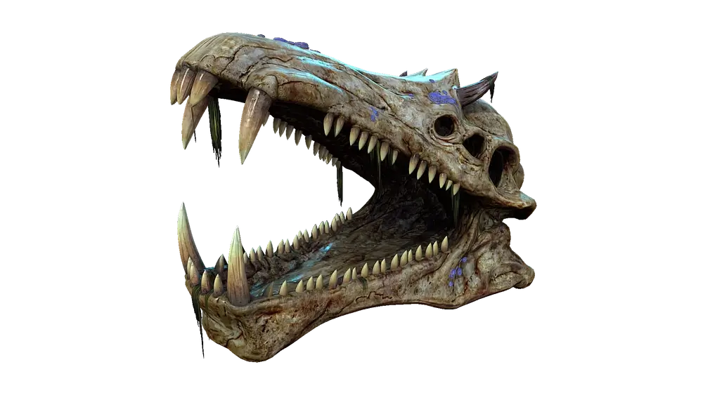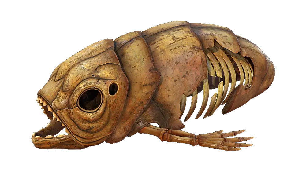 絶滅した超肉食動物の化石。その巨大さゆえ、このような閉鎖空間への侵入は不可能であったはずで、この惑星の地理が長い時間をかけてこの動物を取り囲むように変化したことを示唆している。まさに頂点捕食者。