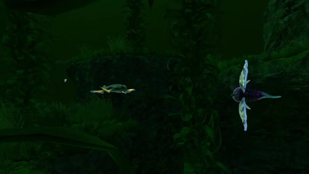 赤ちゃんがいる場合は、成体のガルガンチュアンは攻撃してきません。その代わりに、赤ちゃんの前にとどまって他の生物から守ろうとします。プレイヤーが近づいても大丈夫ですが、そのままガルガンチュアンリヴァイアサンの赤ちゃんを回収してしまうと、いつもどおりに戻ってしまうので注意が必要です。ガルガンチュアンリヴァイアサンは離れればデスポーンするので、距離を離せば、開放されて赤ちゃんだけがプレイヤーの方へ泳いできます。