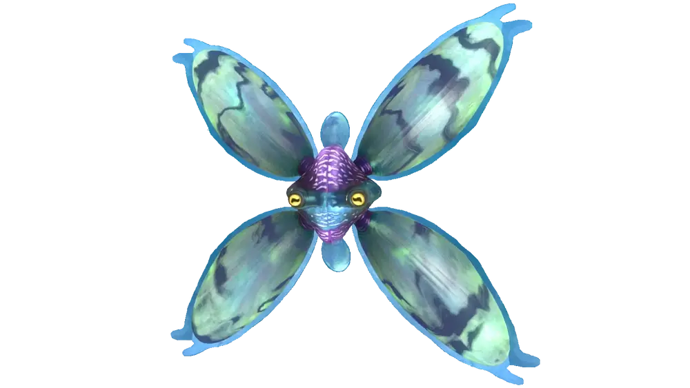 プレイヤーの存在を感知すると、硫黄プラントが花のように開き、中からクラッシュフィッシュが威嚇してゴロゴロと音を立てます。ここからさらに近づくと、クラッシュフィッシュは巣から飛び出し、プレイヤーに突進し、自爆します。威嚇の段階でプレイヤーが後退した場合、クラッシュフィッシュは巣に戻ります。