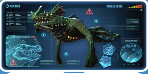 この生物は持続可能な有機生命体のサイズの限界に近づいており、リバイアサンクラスに指定されている。この種の成体は、この惑星のこの部分で生命を支えている火山クレーターエッジでのみ遭遇しており、近づくと極度の攻撃性を示す。