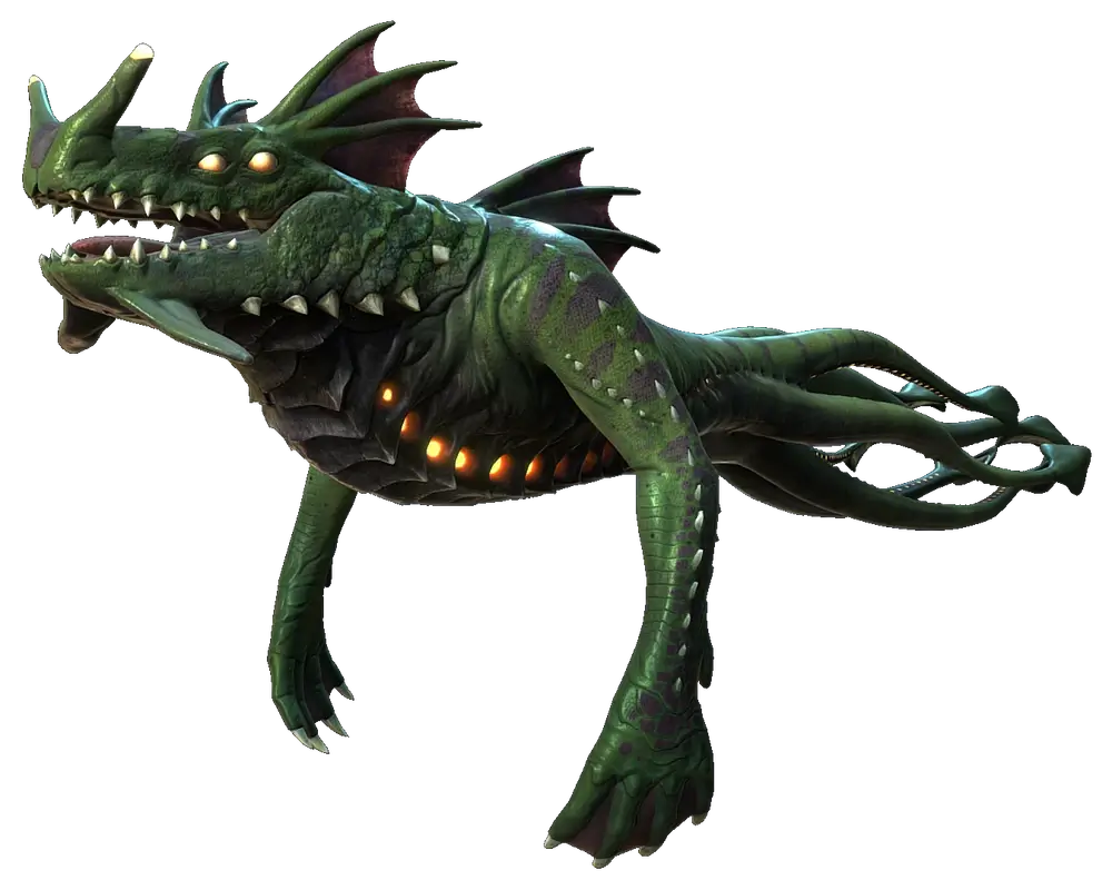 爬虫類のような特徴を持つ巨大なリバイアサンで、この地域の生命を支える火山クレーターの中心を闊歩している。スキャンされた標本は全長112m。