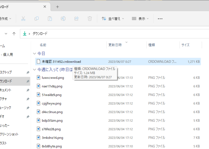 まず、正常にダウンロードできなかった時の状態がこちらです。